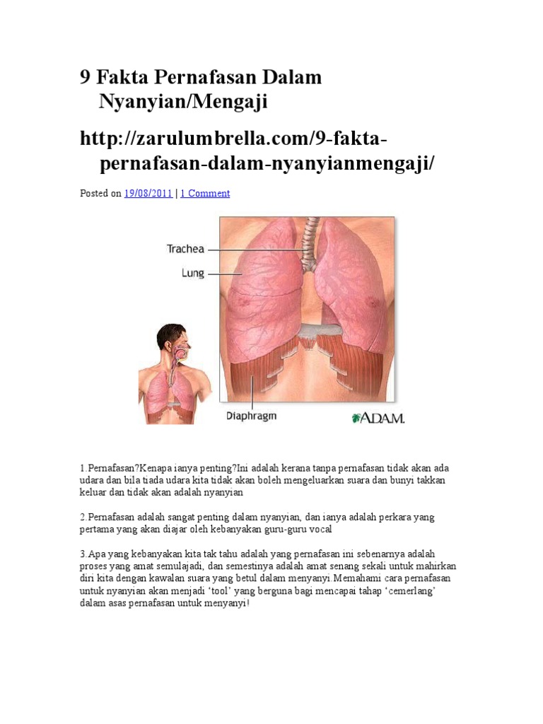 2001 by AbeUrut 0. Perkara ini merupakan perkara asas dalam nyanyian dan perkara penting yang perlu anda kuasai jika ingin menjadi penyanyi yang lebih baik. Teknik pernafasan yang betul juga sangat penting bagi pesakit asma.